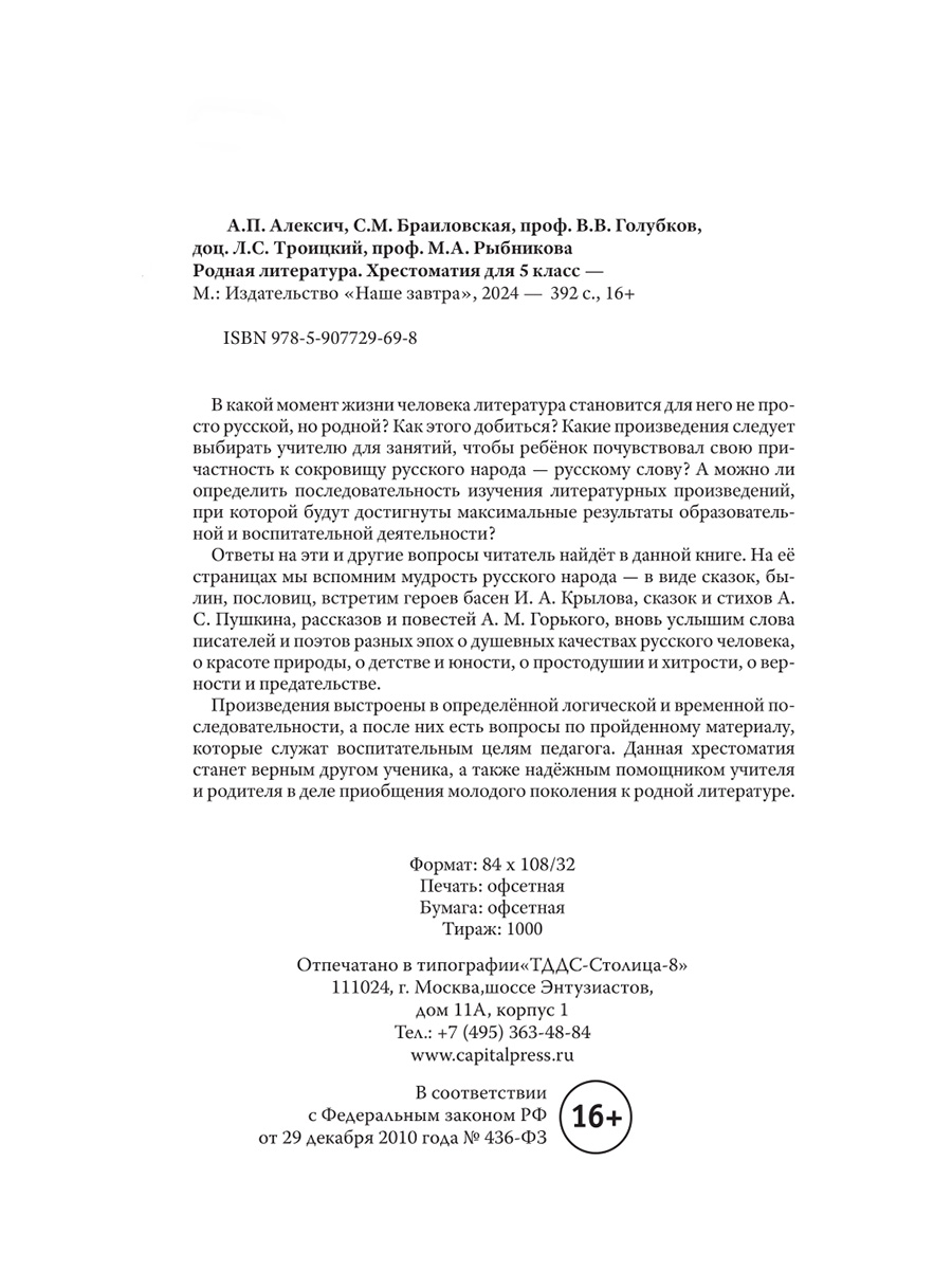 Ответы на эти и другие вопросы читатель найдёт в данной книге. На её страницах мы вспомним мудрость русского народа — в виде сказок, былин, пословиц, встретим героев басен И. А. Крылова, сказок и стихов А. С. Пушкина, рассказов и повестей А. М. Горького, вновь услышим слова писателей и поэтов разных эпох о душевных качествах русского человека, о красоте природы, о детстве и юности, о простодушии и хитрости, о верности и предательстве.
