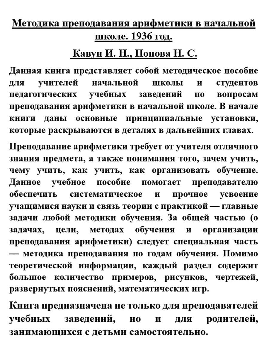 Методика преподавания арифметики в начальной школе. 1936 год. Кавун И. Н., Попова Н. С.