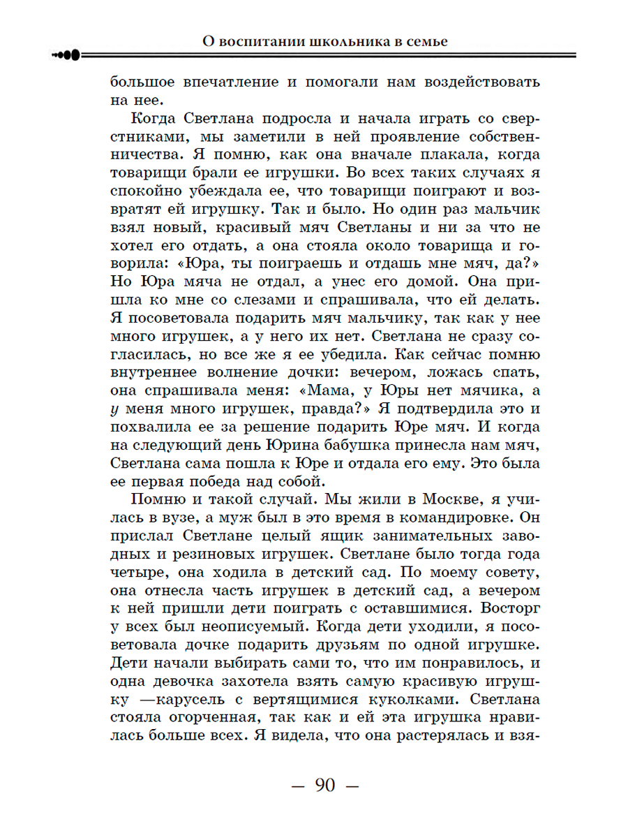 Основой воспитания является тот уклад, который сложился в семье, личный пример и нравственный авторитет родителей. Эти факторы оказывают огромное влияние на всю последующую жизнь человека. В советские годы большое внимание уделялось всестороннему и гармоничному развитию личности.